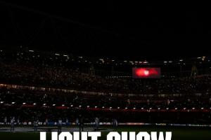 阿森纳官方写道:请尽早入座,欣赏我们的赛前灯光秀!