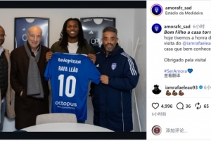 体育资讯2月7日讯 葡萄牙乙级联赛俱乐部阿莫拉更新社媒动态,晒出莱奥造访俱乐部的照片。