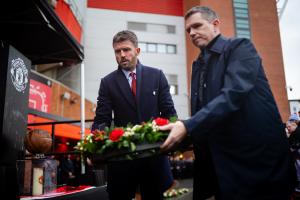 体育资讯02月07日讯 昨天是慕尼黑空难68周年,曼联官方举行了追悼仪式,曼联男女足主帅卡里克、斯金纳,以及队长B费和勒蒂西耶都参加仪式并献上了花圈。