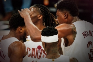 赛后,骑士官推发布赢球海报,封面有四位球员,分别是米切尔、托马斯·布莱恩特,以及两位新援后卫施罗德和基翁·埃利斯。