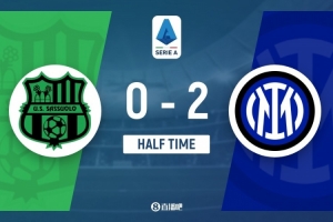 下半场伤停补时2分钟,半场结束,国际米兰暂2-0萨索洛。