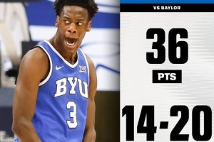 体育资讯2月11日讯 NCAA常规赛,杨百翰大学99-94击败贝勒大学。