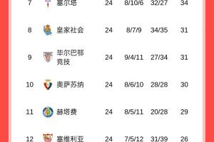 【完整西甲积分榜】
