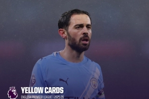 B席本赛季吃到8张黄牌英超并列最多,创造曼城生涯纪录