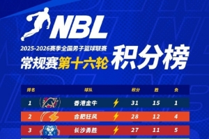【积分榜】2025-2026赛季NBL常规赛积分榜(截至第十六轮结束)。