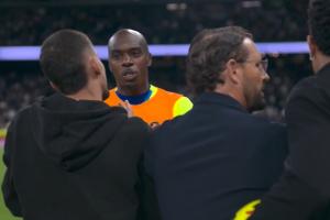 恩约姆挑衅后,多人冲出来安抚维尼修斯。最先出现的是博达拉斯,这位赫塔费主帅示意巴西人冷静,暗示由他来处理自家球员。