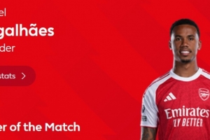 本场比赛加布里埃尔首发出场发挥稳健,贡献8次解围,赛后当选英超官方评选出的本场比赛最佳球员。