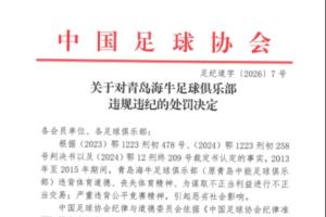 一、扣除青岛海牛足球俱乐部2026赛季相应的职业联赛积分7分;