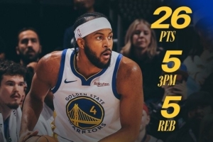 本场比赛,勇士球员穆迪表现出色,首发出战26分钟,投篮15中9,三分球9中5,罚球4中3,砍下26分5篮板2抢断的数据,正负值+28全场最高。