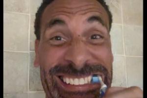 费迪南德晒出自己正在刷牙的照片,配文:晚安,所有人。图片中的他看起来非常的高兴。
